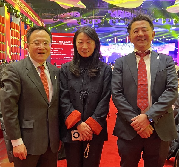祥龙回首留盛景,金蛇起舞贺新程。2月7日,2025年大连市外国友人新春招待会在大连国际会议中心举行。省委常委、市委书记熊茂平出席,市委副书记、市长陈绍旺致新春贺词,市政协主席宫福清、市委副书记刘宏出席。副市长冷雪峰主持招待会。200余位中外嘉宾欢聚一堂,市委常委,市人大常委会、市政府、市政协领导班子成员,市政府有关部门及各区市县、开放先导区负责人;日本驻沈阳总领事馆常驻大连领事办公室首席代表濵田伸子;外国驻连机构和企业代表、外籍荣誉市民代表、外籍专家学者和留学生代表等参加招待会。本公司副董事长、总经理松尾俊哉和董事副总经理田嘉铭应邀参加招待会。