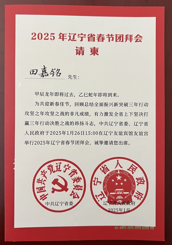 1月26日,作为辽宁省内重点外资企业的代表,本公司董事副总经理田嘉铭应邀参加在沈阳举行的“2025年辽宁省春节团拜会”。