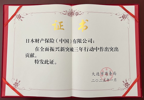 在大连 爱大连 为大连 | 日本财险(中国)上榜大连“突出贡献外资企业”