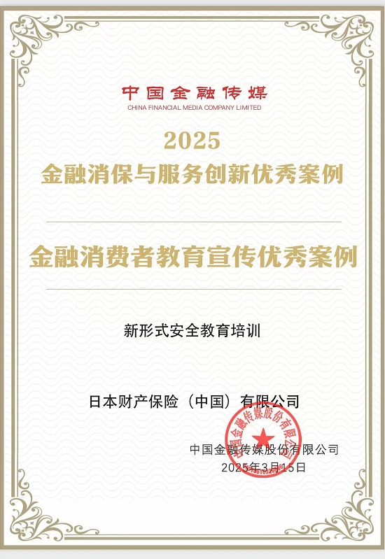 日本财险(中国)荣获“金融消费者教育宣传优秀案例”和“维护消费者合法权益志愿承诺示范单位”