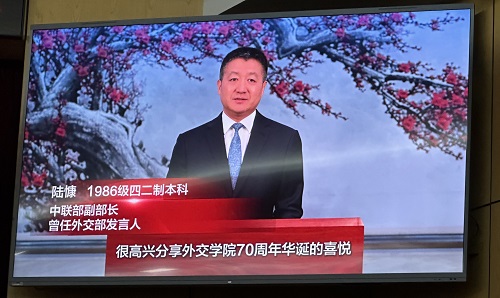 外交部党委书记齐玉出席并讲话,外交学院党委书记王世廷发言,外交学院院长王帆主持大会,中宣部、中联部、教育部及北京市主要领导,外国驻华使节、各高校代表等约300人参加。本公司副董事长、总经理松尾俊哉,董事副总经理田嘉铭、办公室本部高级主管鞠斯文应邀参加了纪念大会。