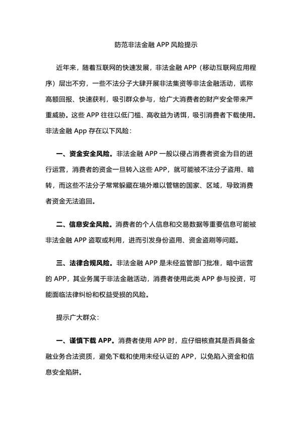 关于防范非法金融APP的风险提示