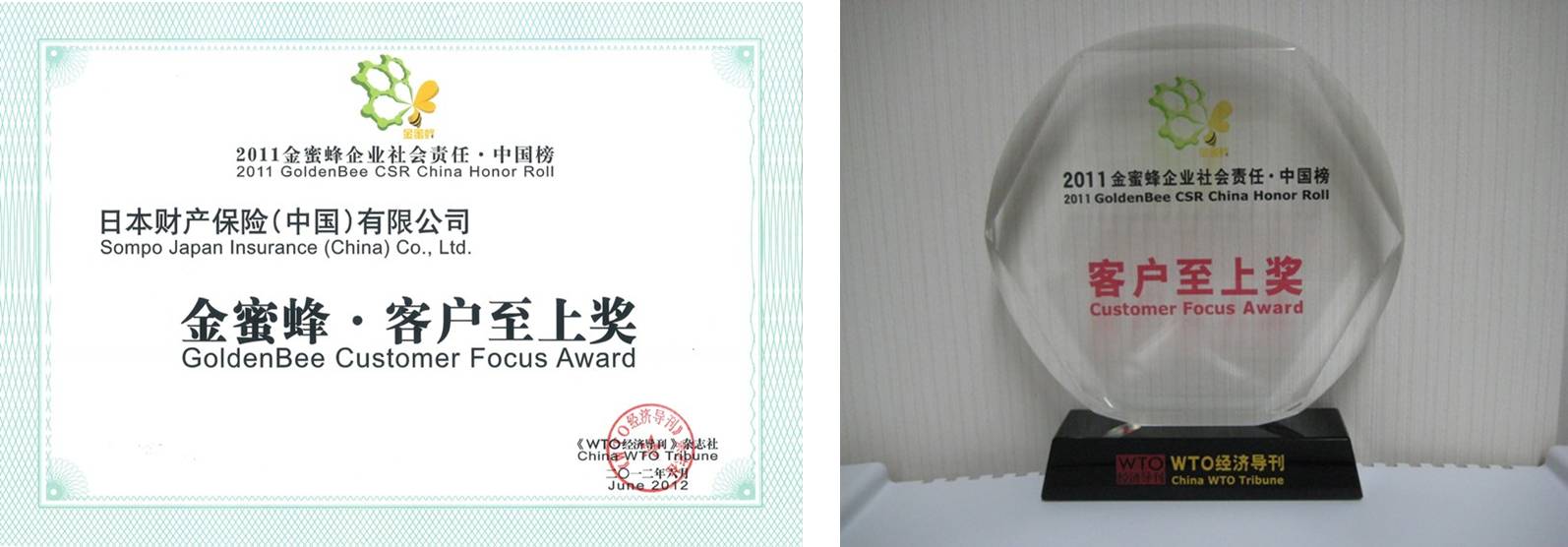 当社は「2011GoldenBee企業社会的責任·中国ランキング」“お客さま第一”賞を受賞
