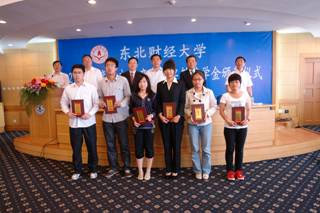 2010年6月9日午後、東北財経大学2009年度日本財産保険(中国)有限公司奨教奨学授与式が之遠楼国際会議庁で開催され、金融学院の教師?生徒合わせて35名が受賞しました。東北財大副校長周連勝、日本財産保険(中国)有限公司常務副理事長岡本忠士、副総経理田嘉铭、教務処処長姚恩全、学生処副処長劉正浩、金融学院院長邢天才、副院長劉波、副書記李雪飛が式典に出席し、司会は金融学院院長邢天才が務めました。