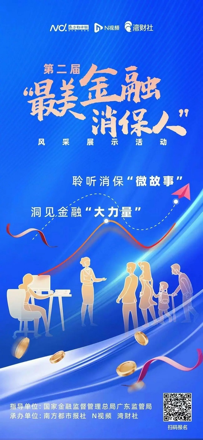 3月12日,由国家金融监督管理总局广东监管局指导,南方都市报、N视频、湾财社承办的第二届“最美金融消保人”风采展示活动将在广州举办。此次活动主题为“凝心聚力谋发展,虎跃龙腾启新篇”,来自金融监管部门、行业协会、金融机构等多方嘉宾将齐聚一堂,见证“最美消保人”,共话广东金融服务实体经济、支持高质量发展的新趋势与新思路。
